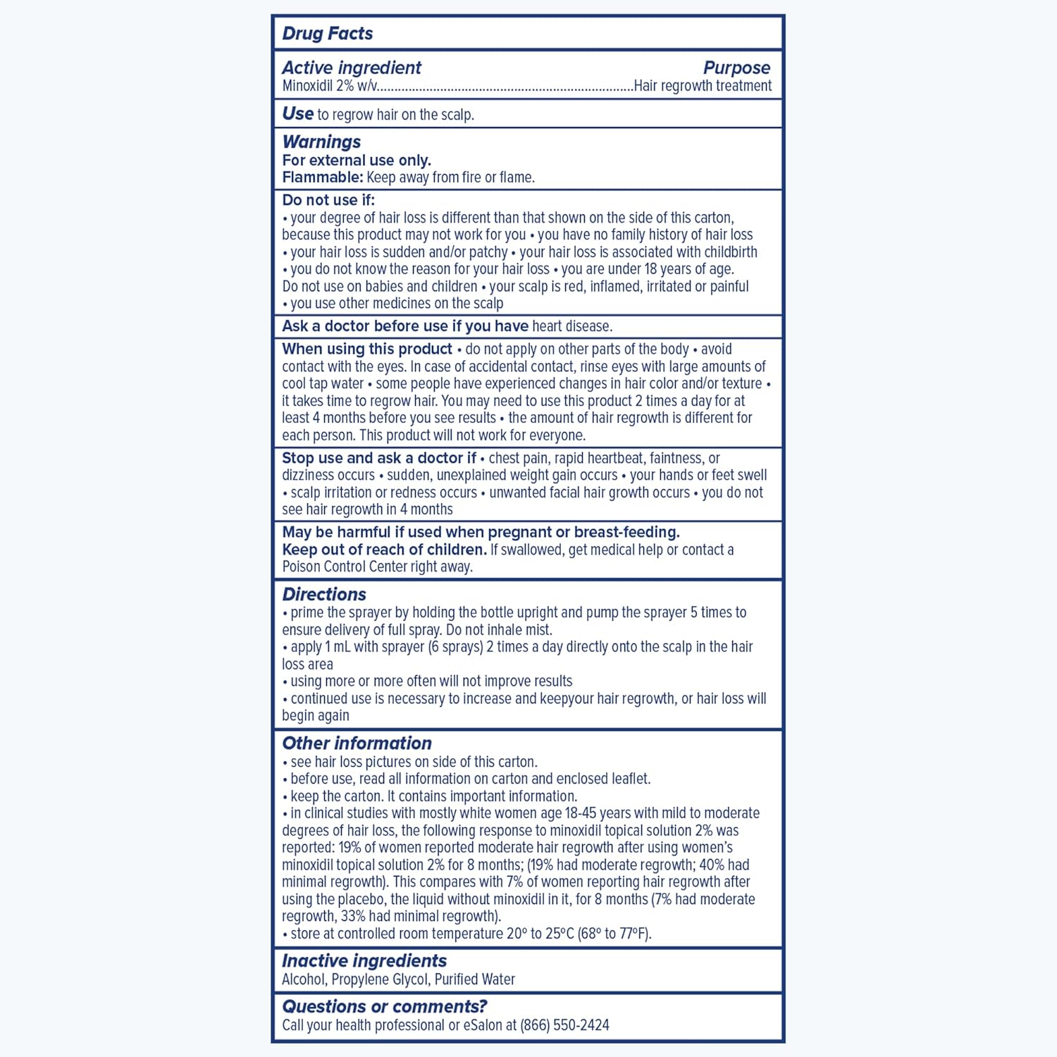 eSalon Hair Regrowth Treatment, 2% Minoxidil Topical Solution, 2.7 fl oz, One Month Supply, for Women