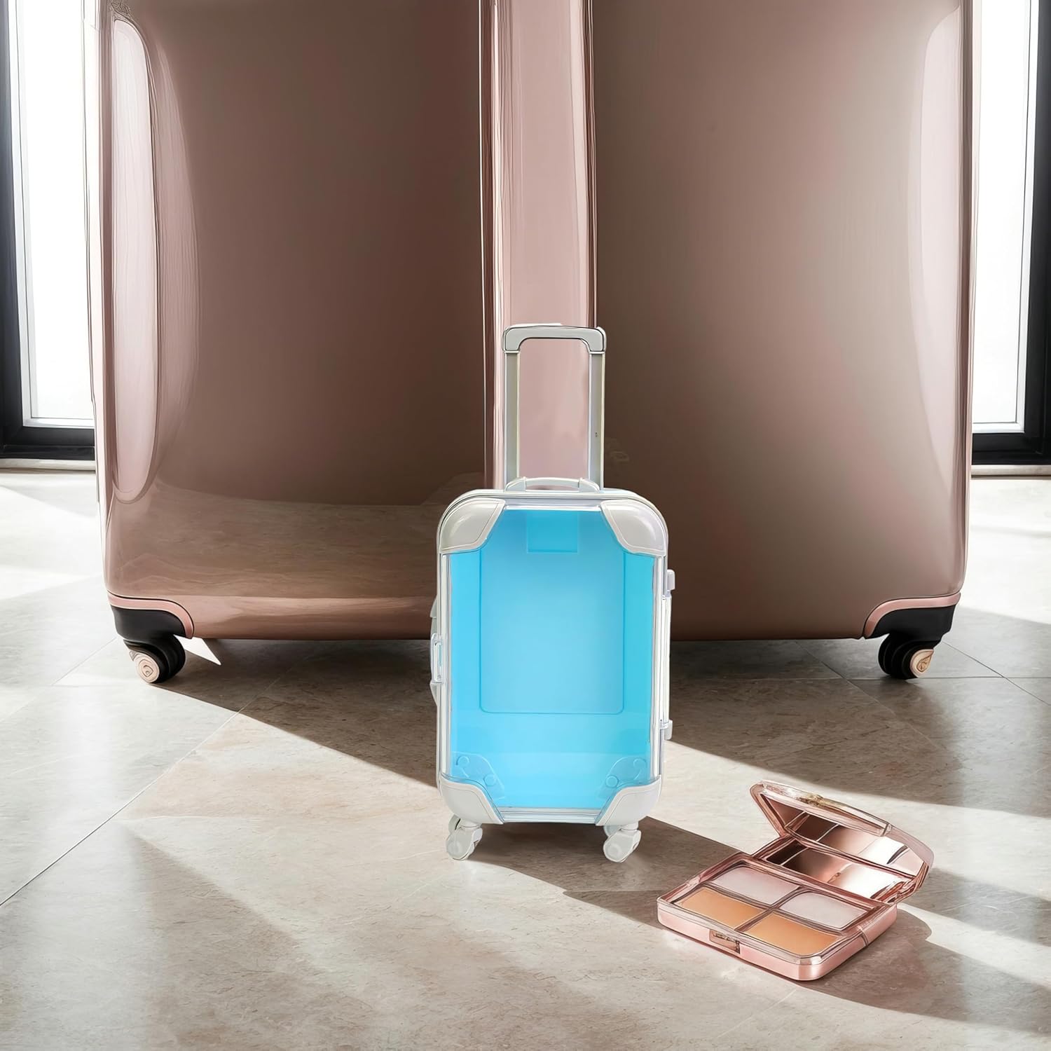 False Eyelash Storage Box, Portable Travel Organizer Mini Luggage False Eyelash Tray Makeup Tool (BLUE)