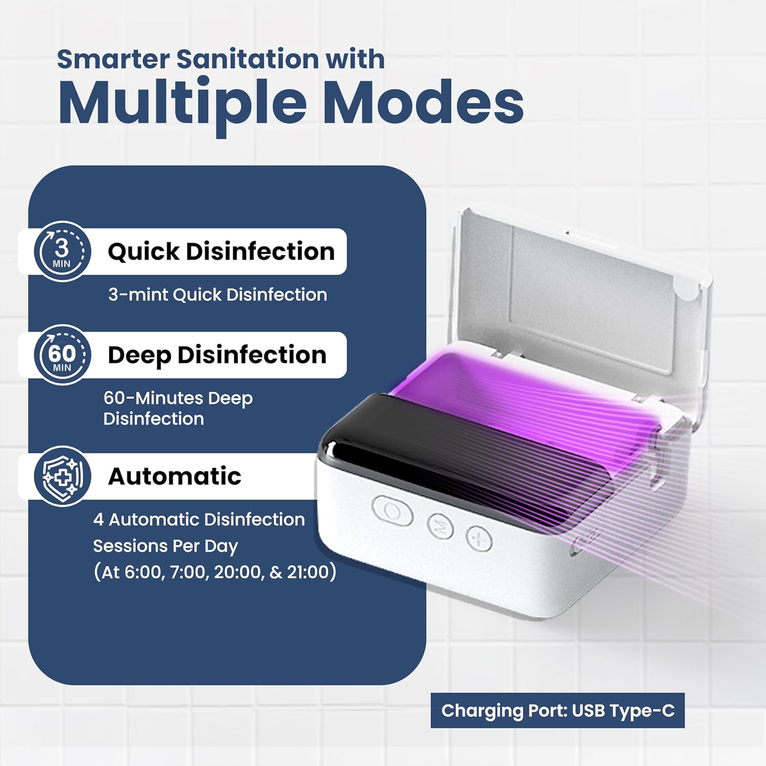 - Cordless, Rechargeable & Travel-Friendly : This compact toothbrush holders UV sanitizer Also works as a protective travel case. Its 650mAh battery lasts up to 30 days per charge and recharges in just 1.5 hours using a Type-C cable, perfect for home, office, or on-the-go.