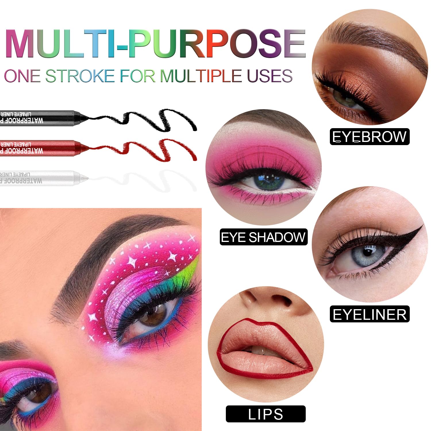 - 【Multi-Function Makeup Pen】This eye make-up tool can be used an superb eyeliner, as well as an eyeshadow pen or highlighter. Versatile design saves storage space and time of makeup for traveling.