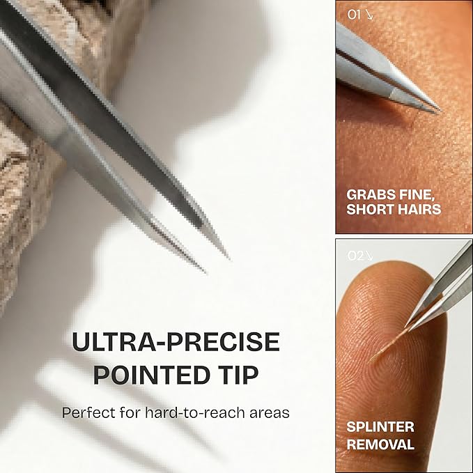 - Ultra Precision Design: Our pointed tweezers are engineered for accuracy, ideal as a blackhead removal tool or splinter tweezers. With fine point tweezers for delicate tasks, they are the best rated tweezers, offering unparalleled precision for all your grooming needs.
