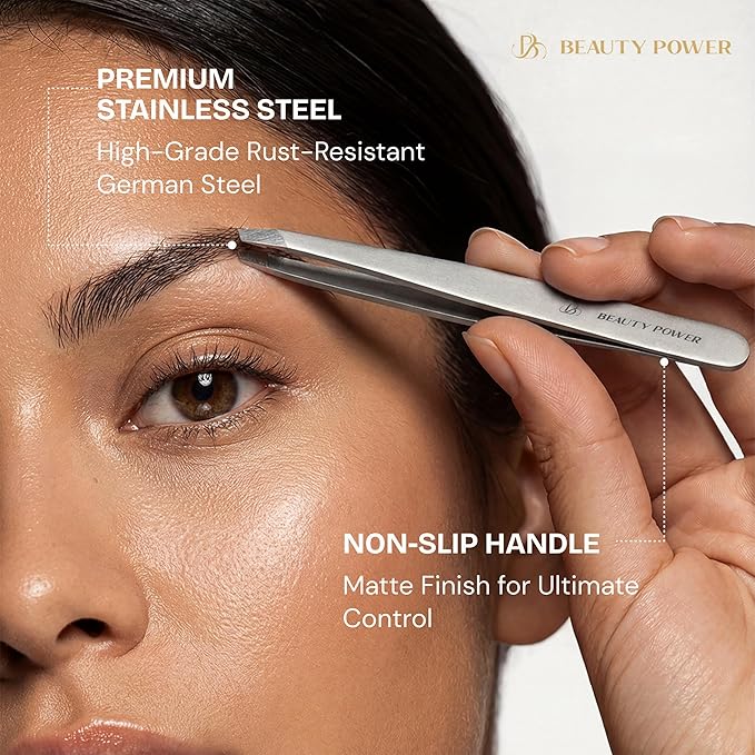 - Eyebrow Tweezers Professional Quality: Our professional tweezers set includes precision tweezers designed for both men and women. Made from German stainless steel, these slanted tweezers are perfect for shaping and grooming your eyebrows with ease.
