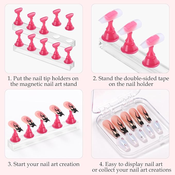 - EASY TO COMPLETE NAIL ART: These magnetic nail art holders are beautifully shaped, the right size and height, comfortable and stable to use, you can easily practice nail art and say goodbye to the hassle of holding your nails while creating a masterpiece. It can also be used as a salon display stand to show off beautiful fake nails