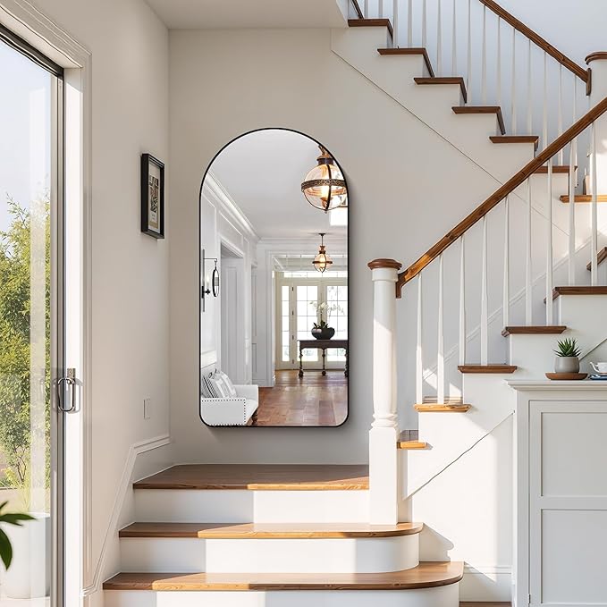 - Arched Bathroom Mirror Design: The Arched-top wall mirror makes your bathroom more elegant and classy, which especially attracts your eyes.bathroom mirrors for over sink,living room wall decor, black arched mirror Ideal for wall mirrors decorative, black mirror for bathroom make the space more brighter and spacious.