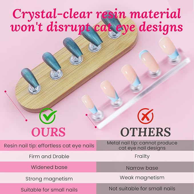 • Strong Magnetism: The wide base of the fake nail stand is not easy to upend. The strong adsorption effect allows the nail tip stand to easily attach to the iron sheet at the top of the wooden base. The Double-sided Tape ensures that your nail tip holder and nail stick together firmly. This allows you to focus on the nail design without worrying about the risk of shaking or the nail plate falling off the finger deck