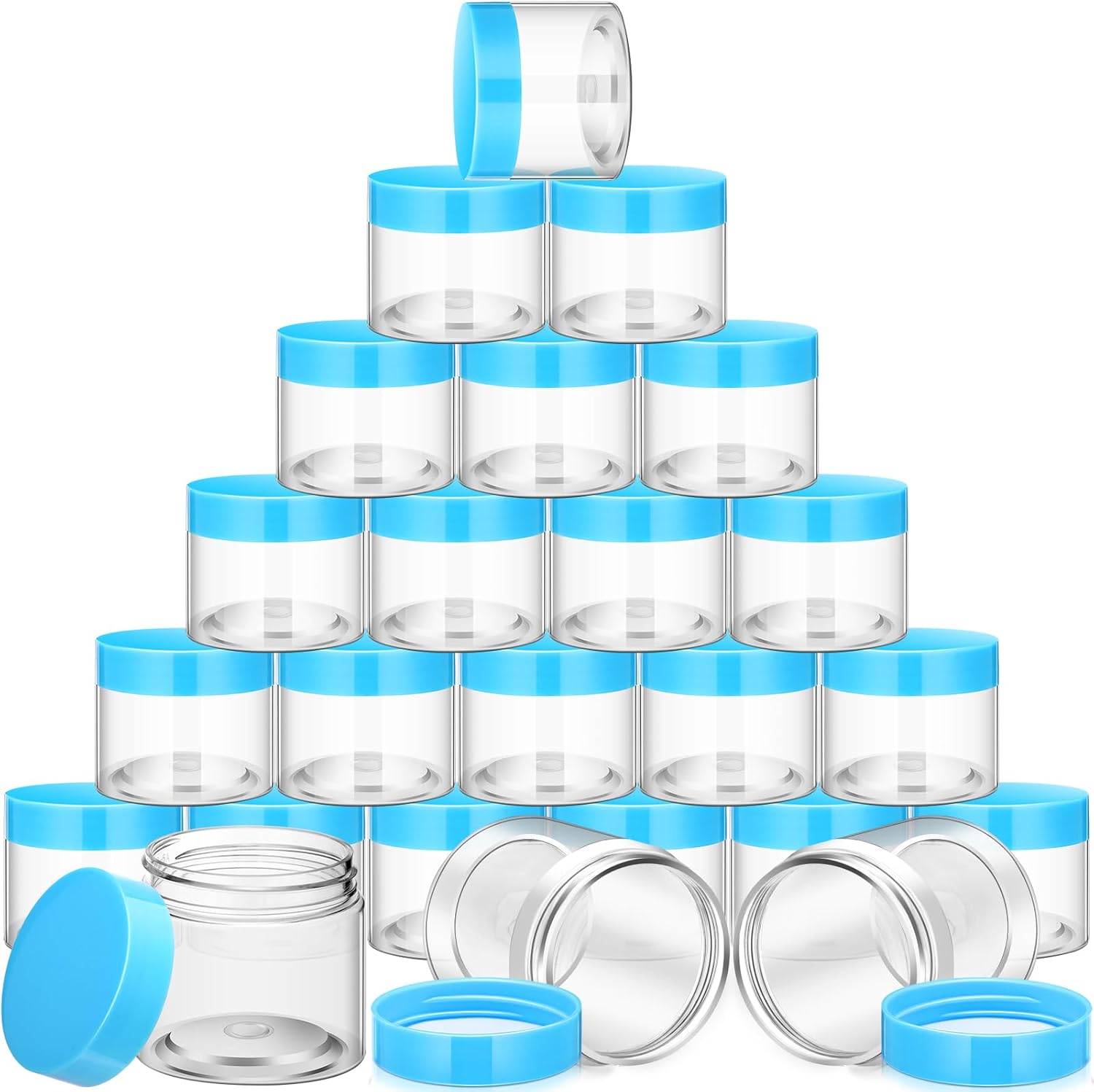 SATINIOR 24 Pieces Empty Clear Plastic Jars with Lids Round Storage Containers Wide Mouth for Beauty Product Cosmetic Cream Lotion Liquid Butter Craft and Food(Blue Lid,4 oz)