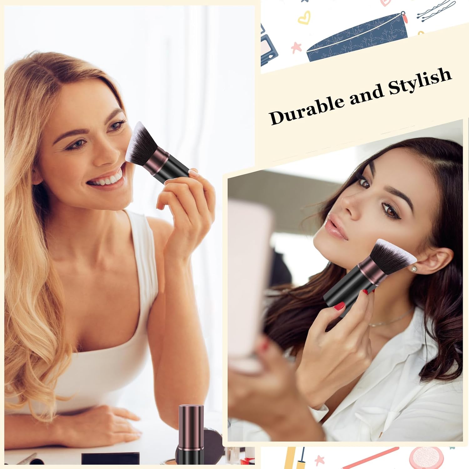 - High Quality Bristles: Made with high quality synthetic fibers, super soft, allows you to tap on products for flawless, air-touched, full-coverage finish, don't absorb powder foundation into the brush itself.