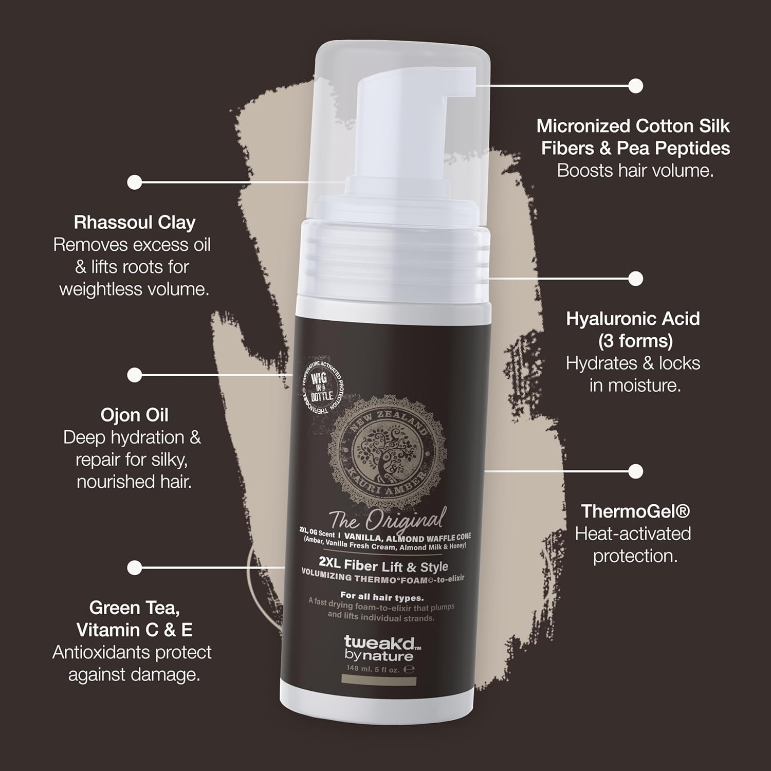 Tweak’d by Nature - 2XL Fiber Lift & Style Volumizing Foam, Styling Foam and Mousse for Hair Volume, Heat Protectant, Hydrating for Long-Lasting Softness, Cruelty Free (5oz)