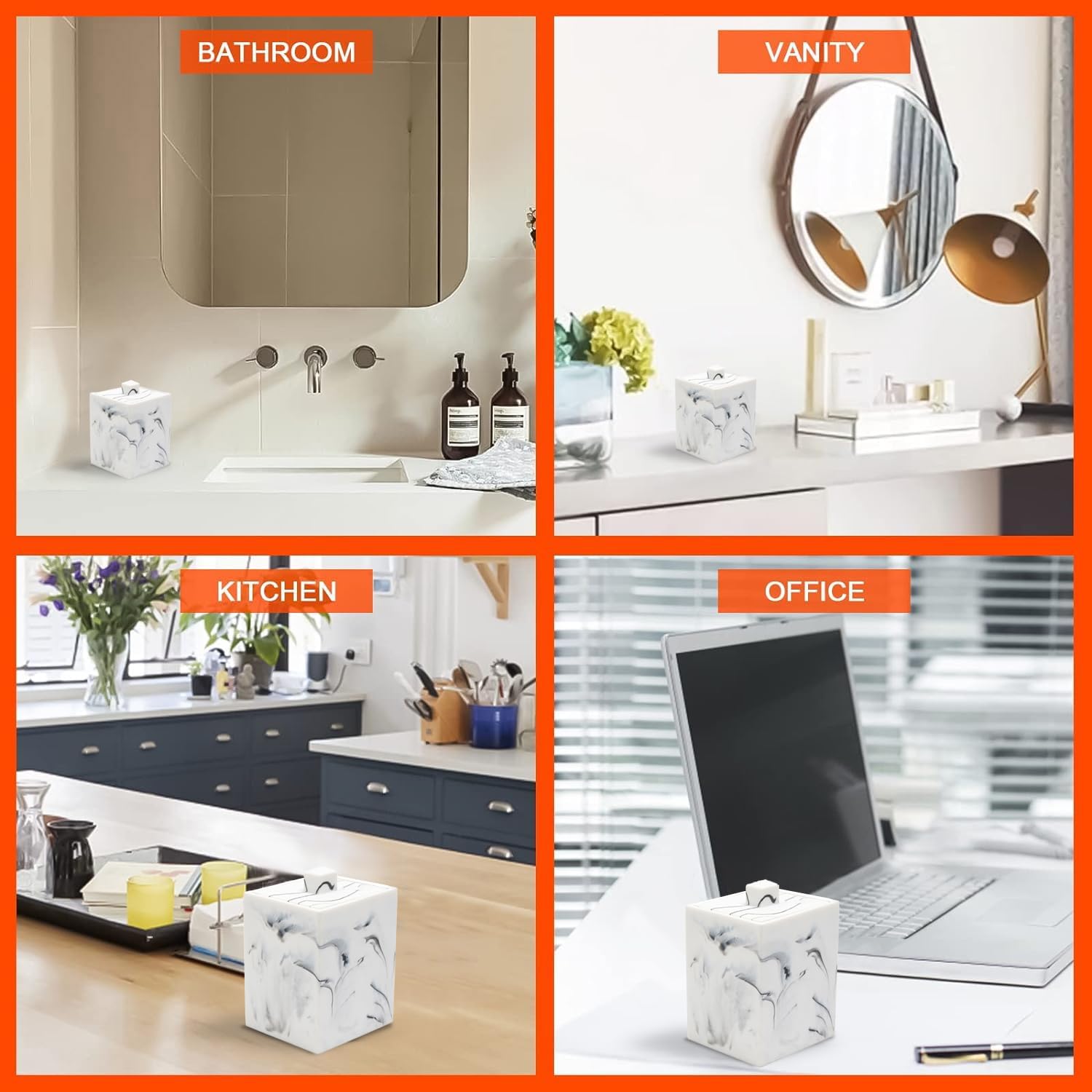- High-quality Resin materials - Our cotton swab organizer made of 100% resin, The exterior looks like Ceramics and Marble, but it is more drop-resistant than Ceramics and glass. More economical and environmentally friendly than marble