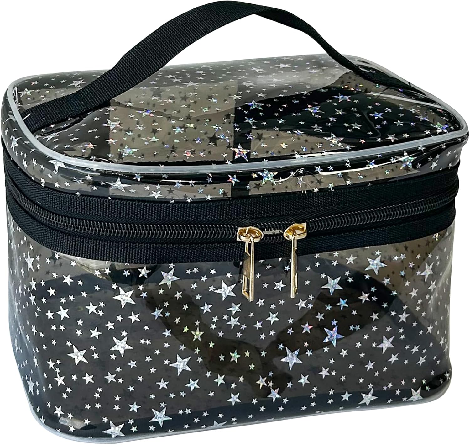 - 🌷【Portable and Stylish】Our portable holographic makeup bag is 20x14x8cm/7.87x5.51x3.15inches,lightweight and durable.Transparent material allows for easy visibility of internal items.Convenient for you to quickly find and retrieve items,bringing you more convenience