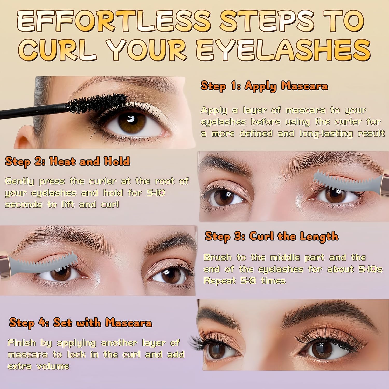 - 【Usage Tips】🔋 First Use: Fully charge for 1-2 hours. Practice the operation technique before formal use. ✨ Curling Hack: Lightly apply mascara before curling to boost heat setting. Reapply after curling for a natural, long-lasting lift