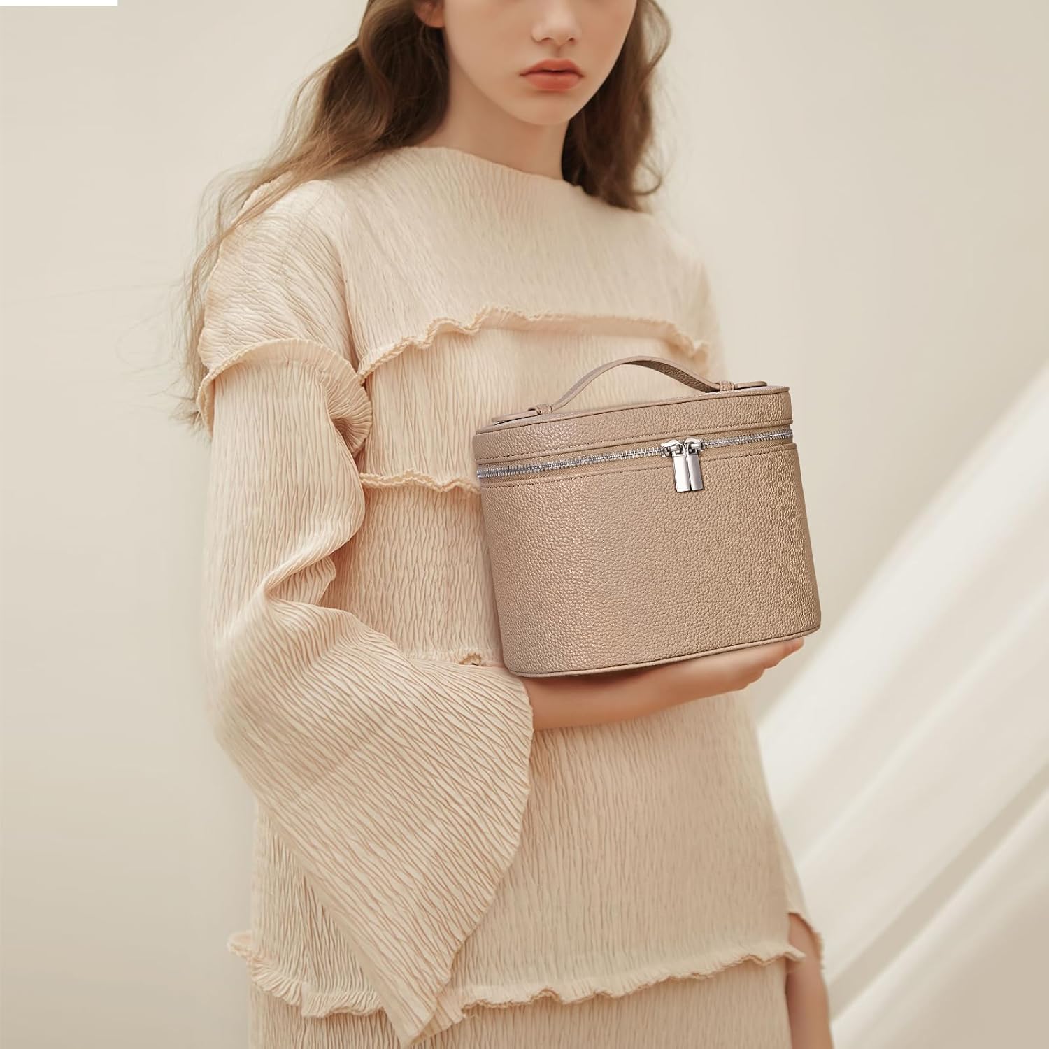 - Size and Capacity: Size: 7.87x5.91x5.51inch. This coametic bag can easily holds travel-size toiletries, skin-care products or other makeup items.