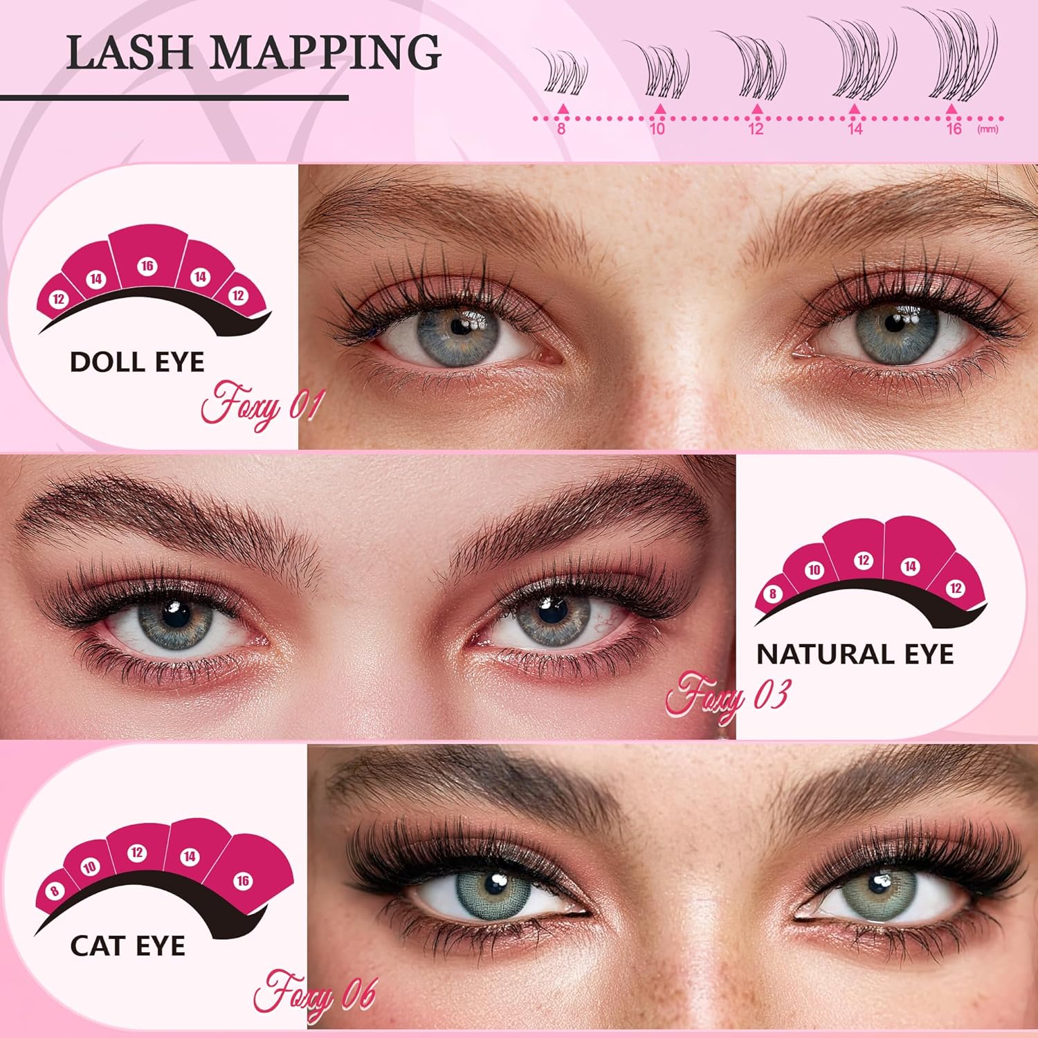- 【0.05mm Ultra-Invisible Eyelash Band】Crafted with 30 refined processes and meticulously hand-cut for the perfect length in every cluster, it easily molds to the eye shape for a natural look. The ultra-thin 0.05mm super-thin fishing line lash band is flexible and molds perfectly to your eyelid, providing a seamless, natural fit.Elastic fibers allow for easy reshaping. Reusable and resilient, these lashes bounce back to their original form after every use, ensuring long-lasting wear. Simply clean off the adhesive from the lash strip, and they’re ready to reuse again and again.