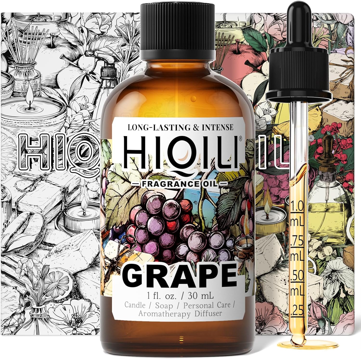 HIQILI Grape Fragrance Oil for Diffuser & Oil Burner, Fruity Scents for Making Candles, Hand Soap, Air Freshener, Long Lasting - 1 Fl Oz