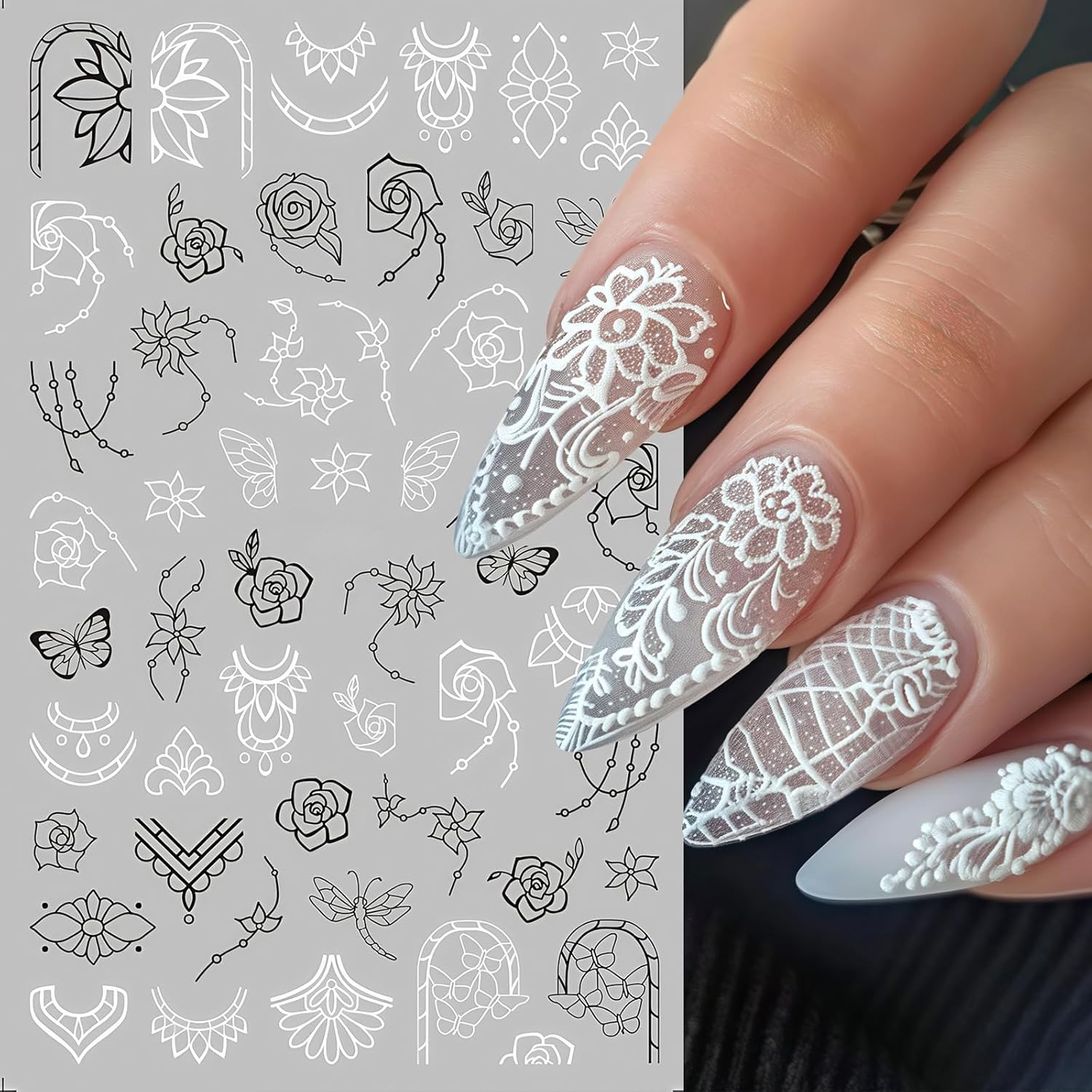 10 Sheets Black White Leaves Flowers Nail Stickers Decals 3D Self- Adhesive Retro Flower Vintage Vine Rose Flower Butterflies Nail Design Classic Fashion Simple Nails Supplies for Acrylic Nail DIY