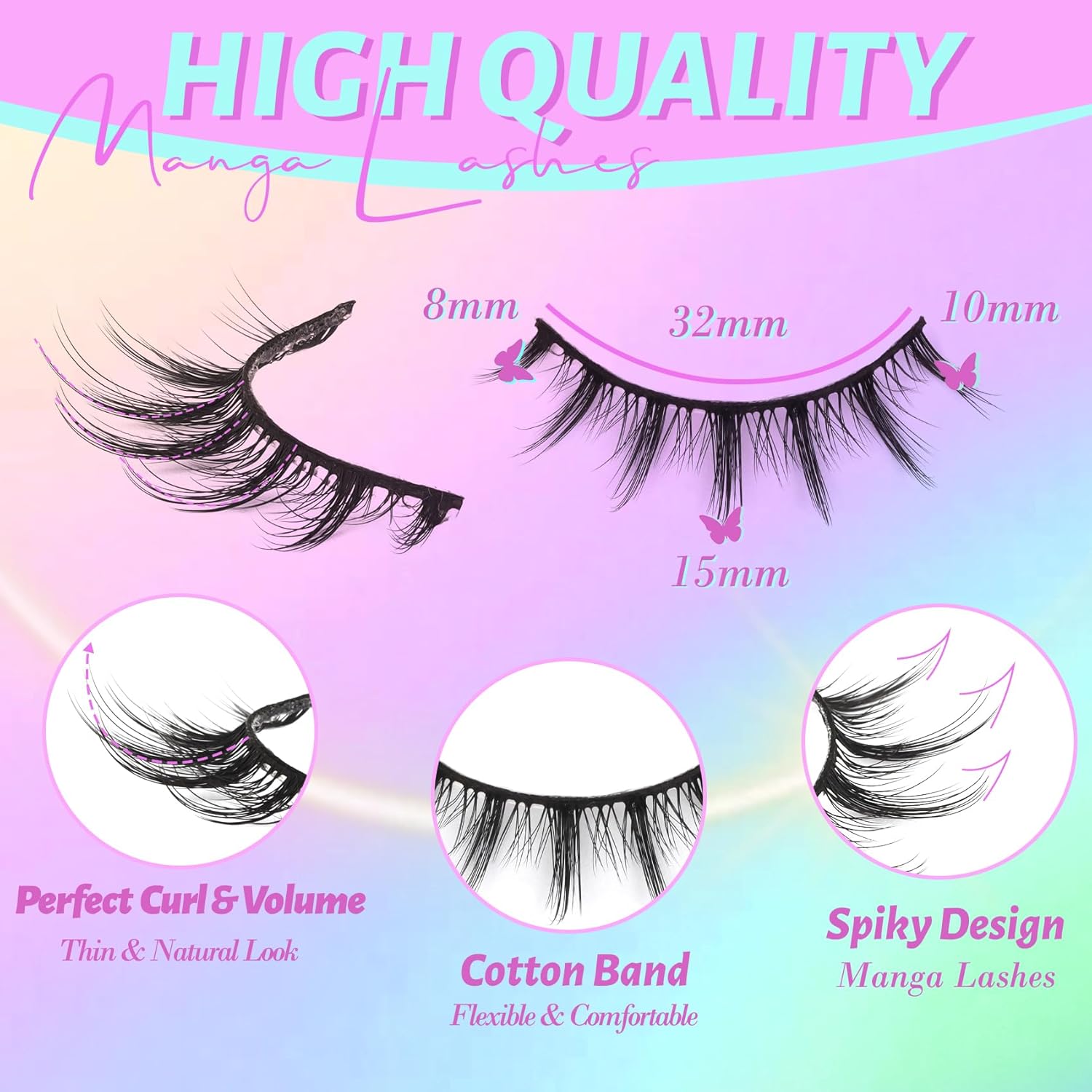 - Soft & Easy to Apply: These manga lashes are soft and lightweight. And with the flexible thin cotton band, even if you are a beginner can easy to apply. Also, you can wear it to any occasions, such as daily-wearing, party, working and so on.