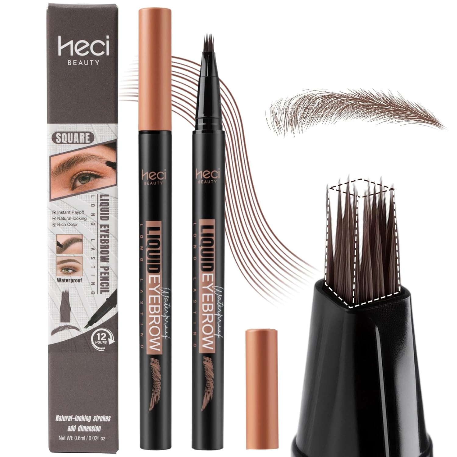 - 【NATURAL MAKEUP EFFECT】HECI BEAUTY Liquid Brow Pencil - Its unique shape makes it easy to fill, shape, and add volume. Each stroke mimics real brow hairs. The unique brush head features flat, square-angled, tightly packed bristles for precise, lightweight application, mimicking the look of real brows. Ideal for beginners and professionals alike, this pencil evenly blends liquid pigment and creates beautifully defined brows in seconds.