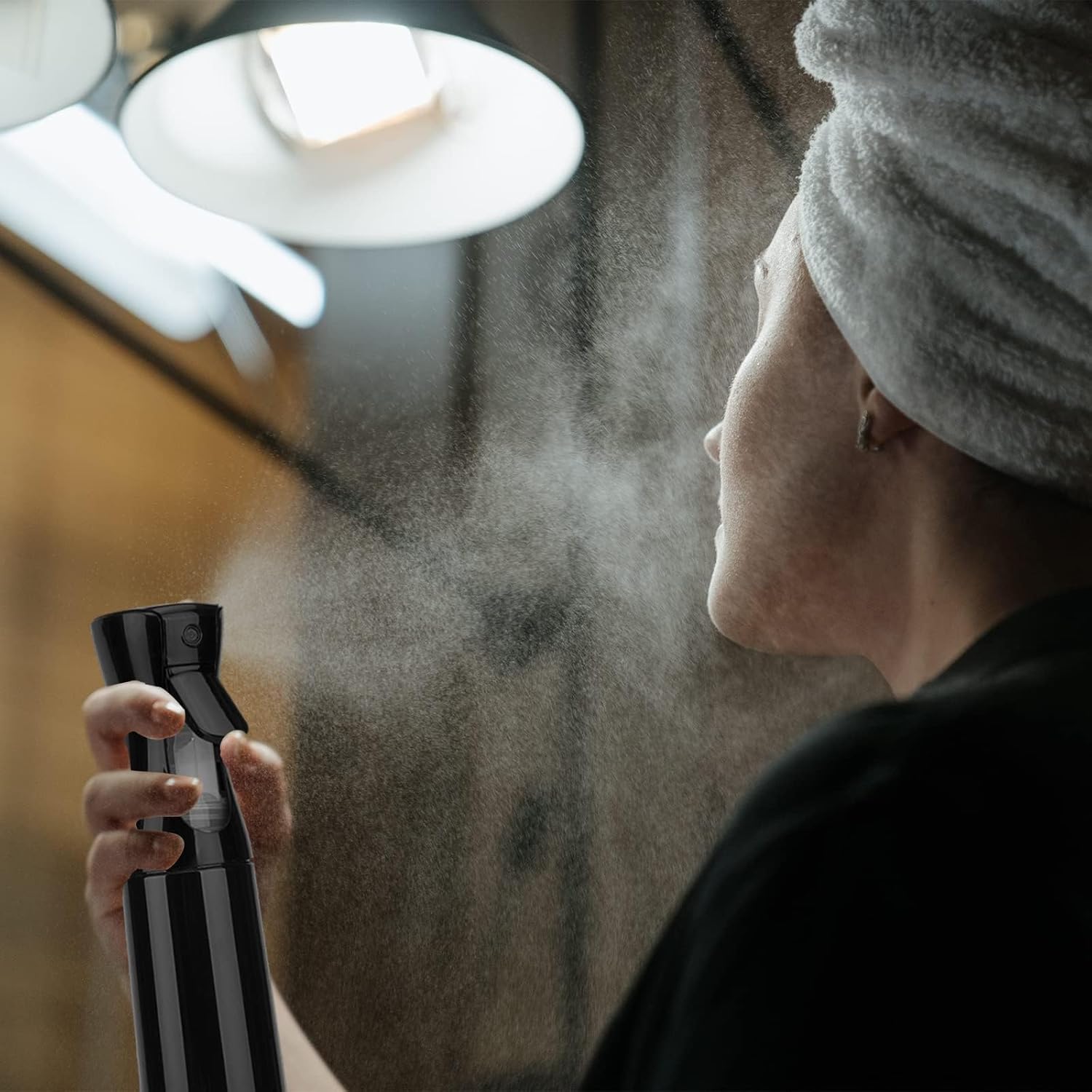 Spray Bottle for Hair (10.15OZ /300ML) Continuous Ultra Fine Mist Sprayer for Hair, Salons, Barber, Plants, Skin Care, Cleaning Black