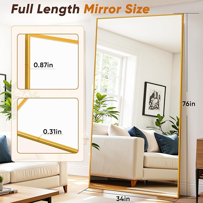 - Full Length Mirror & Space Enhancer: 76"x34"floor mirror provides true head-to-toe reflection while making rooms appear brighter and more spacious. Ideal for bedrooms, living rooms, and entryways