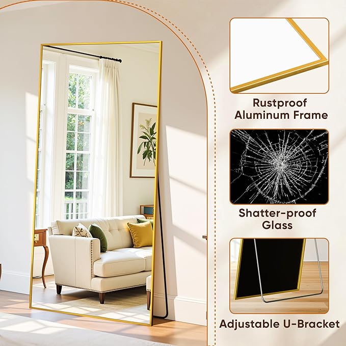 - EXPLOSION-PROOF FOR MORE SAFETY: The standing mirror is made of explosion-proof material, so even if the mirror is accidentally damaged, it won't scatter all over the place. protect you and your family's safety. Our full length wall mirrors are tightly packed in all directions in high quality honeycomb cardboard boxes to prevent the mirrors from being damaged in transit