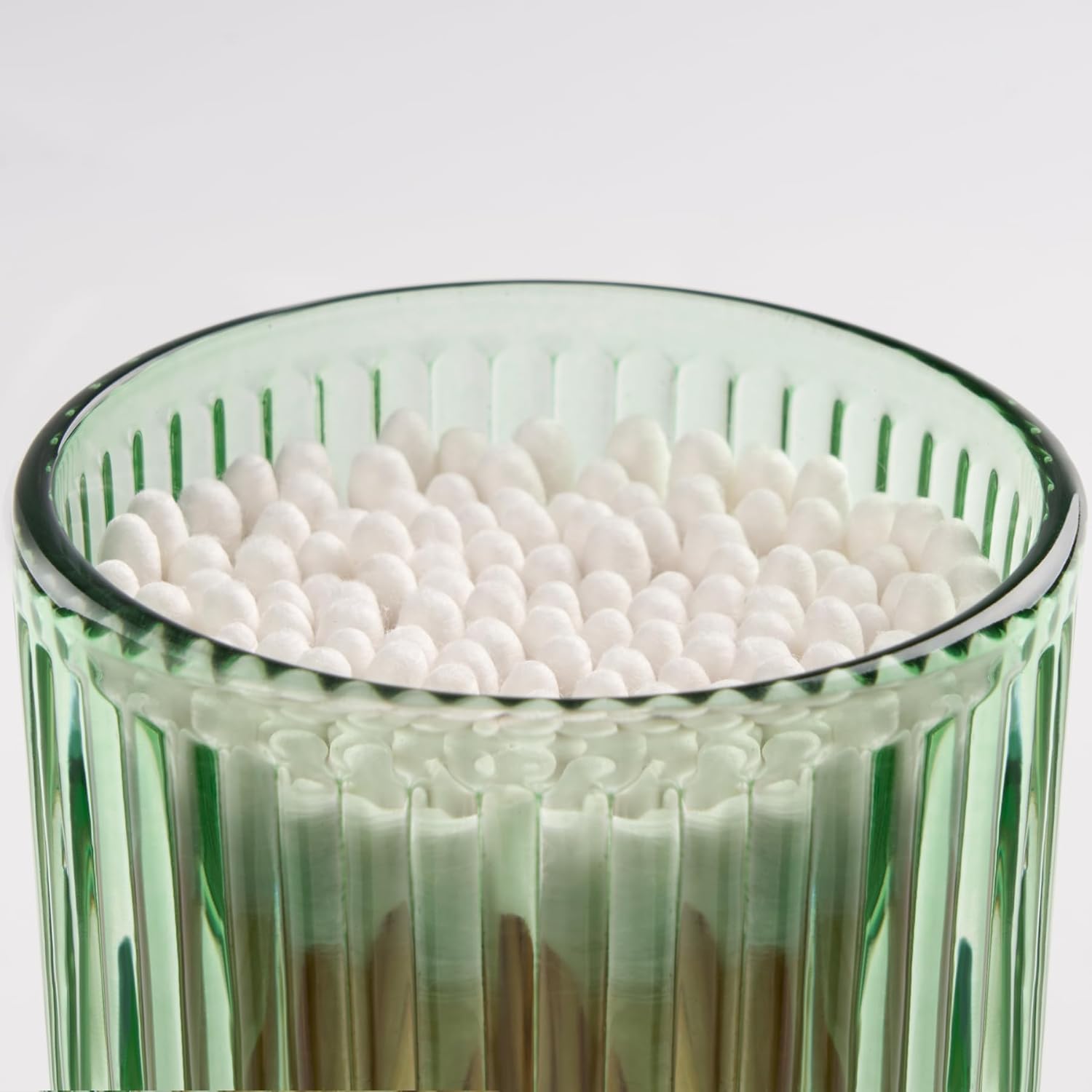 - Versatile Use Beyond Bathroom - Not just for qtips and cotton pads! Use it in the kitchen forspices, in the living room for small items, or on your desk for paper clips, keys, and jewelry. lt canalso work as a mouth rinse cup, candle holder, or decorative jar. Perfect for multipurpose home organization and storage solutions