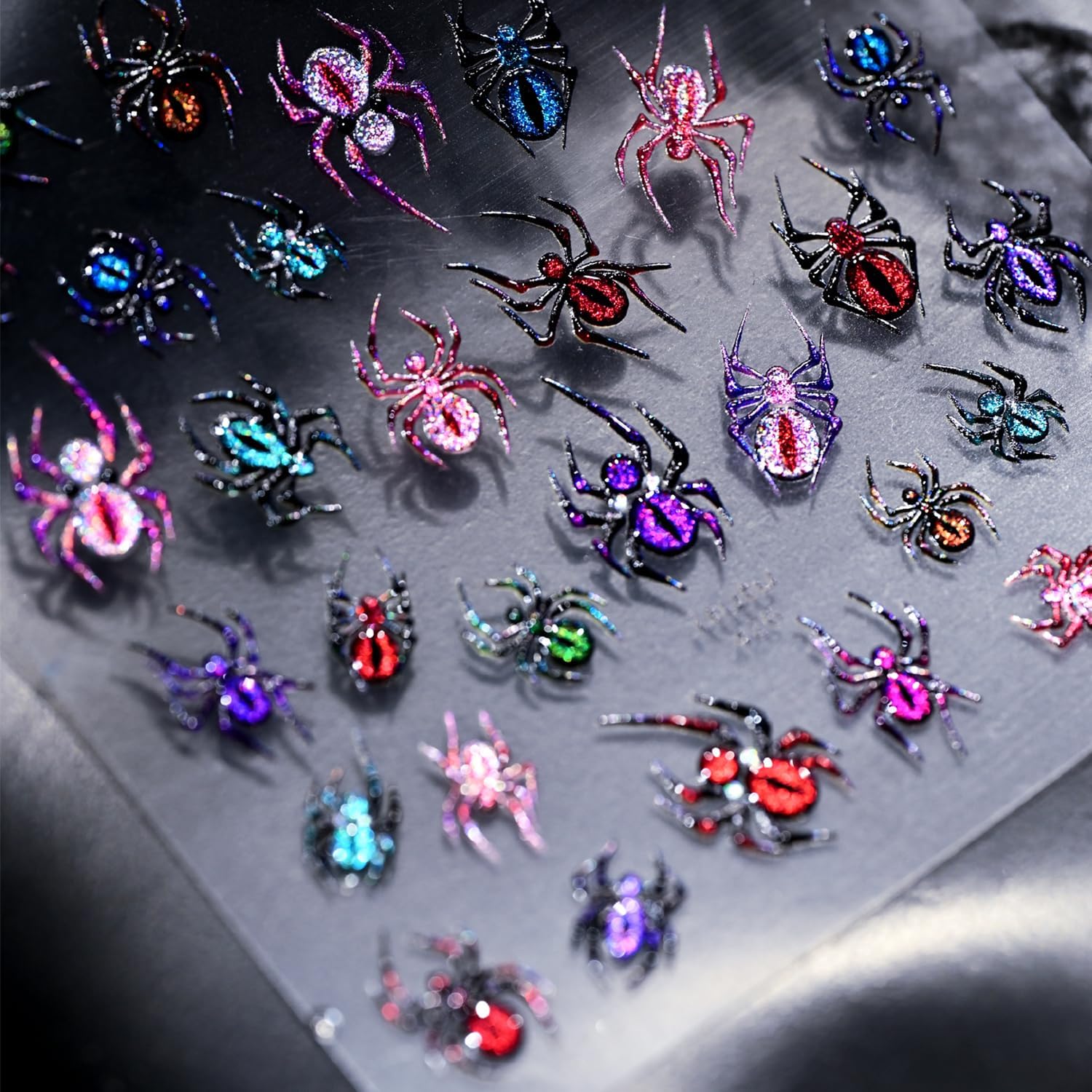 - Self-Adhesive Design: 5D self-adhesive colorful spider nail decals for nail art design is simple and quick to use, spider nail art decals work great on bare nails, they will stay on for a long time and will not peel off your nails, enjoy the feeling of nail art