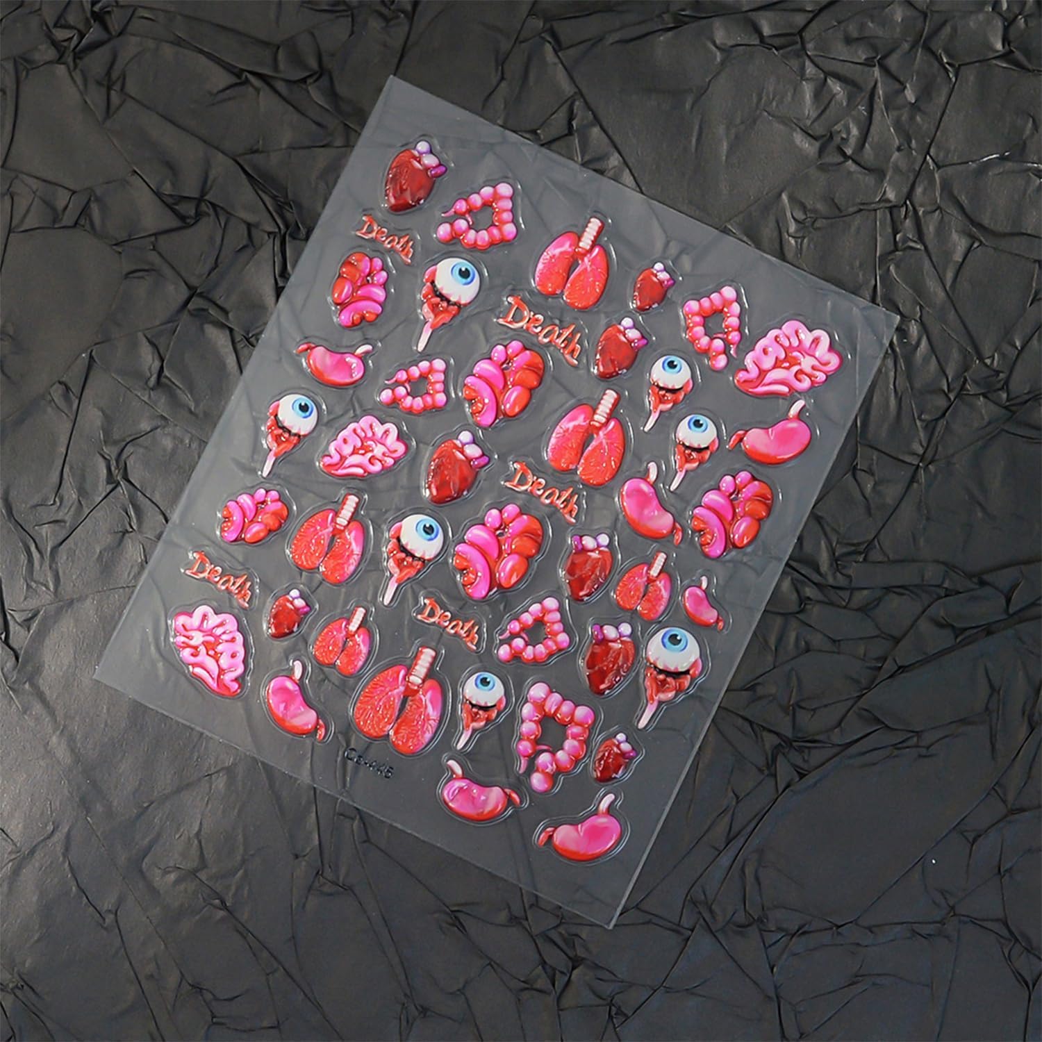 1 Sheets Horror Halloween Nail Stickers for Nail Art Embossed Eyeballs Nail Art Stickers Scary Heart Lungs Human Organs Nail Decals 5D Self-Adhesive Bloody Holiday Nail Design Supplies for Women