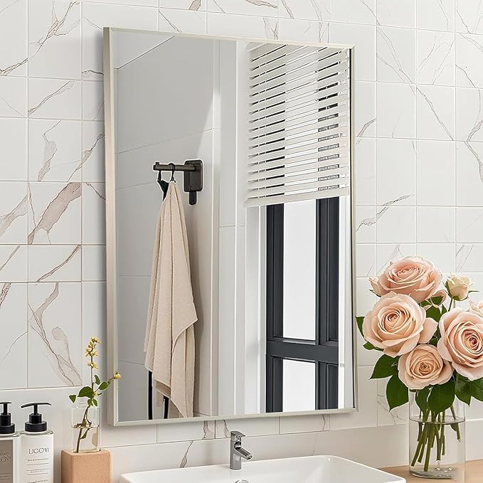 - Premium Aluminum Alloy Rectangle Mirror: This rectangular bathroom mirror features a sleek aluminum alloy frame, combining rust-proof durability with lightweight design. The anti-deformed structure ensures long-term use, while its corrosion-resistant finish suits various decor styles. Perfect for bathrooms, hallways, or living rooms, this rectangle wall mirror adds a modern touch to any space.
