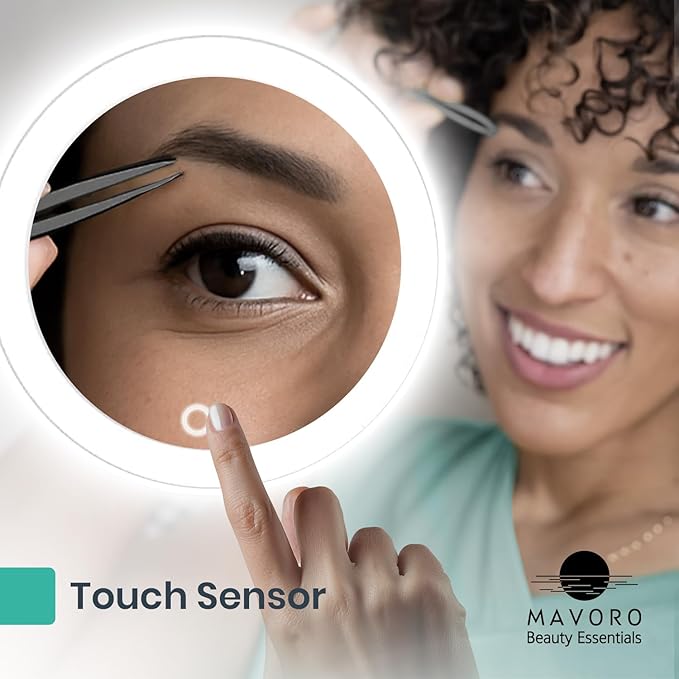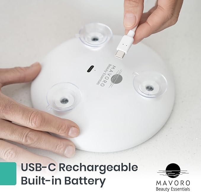 Mavoro 6.8" LED Magnifying Mirror with 3 Strong Suction Cups | 5X Magnification | Portable Lighted Travel Makeup & Cosmetic Mirror with Light (USB-C Rechargeable Built-in Battery | 5X)