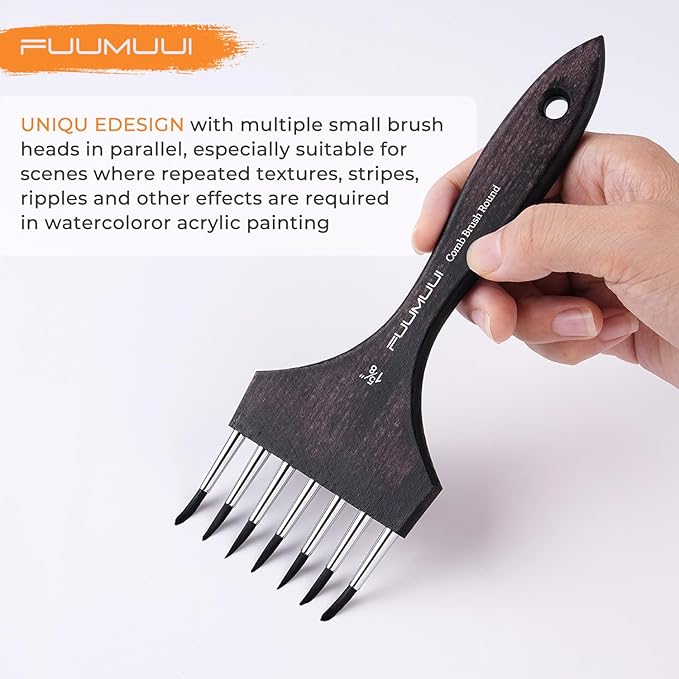 - Premium Synthetic Brushes: Crafted with premium nylon bristles, the brush balances softness with resilience, maintaining a clean flat edge that delivers both structure and flexibility. Its excellent water retention ensures smooth pigment flow, making washes, gradients, and textural effects easy to achieve. From the delicate rhythm of grass and waves to bold textured surfaces, the Fuumuui Round Head Comb Brush brings consistency and artistry to every stroke.
