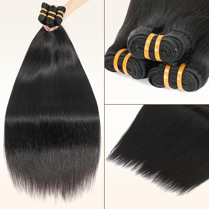 - Bundles Human Hair Quality:High Quality Straight Bundles Human Hair with Machine Double Weft,Strong And Durable, High Elasticity And Bouncy. No Animal Hair, High Density, Thick Hair Tail, Soft Braiding, Full, Elastic And Shiny Hair, No Chemical Ingredients, No Shedding, No Odor, Various Shapes, Easy to Braid, Skin-Friendly and Comfortable, No Split Ends.