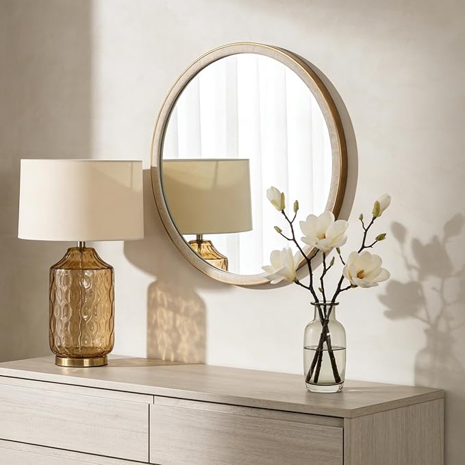 WallBeyond Round Mirror 28 Inch,Linen-Texture Circle Wall Mirror for Bathroom, Bedroom, Entryway, Living Room