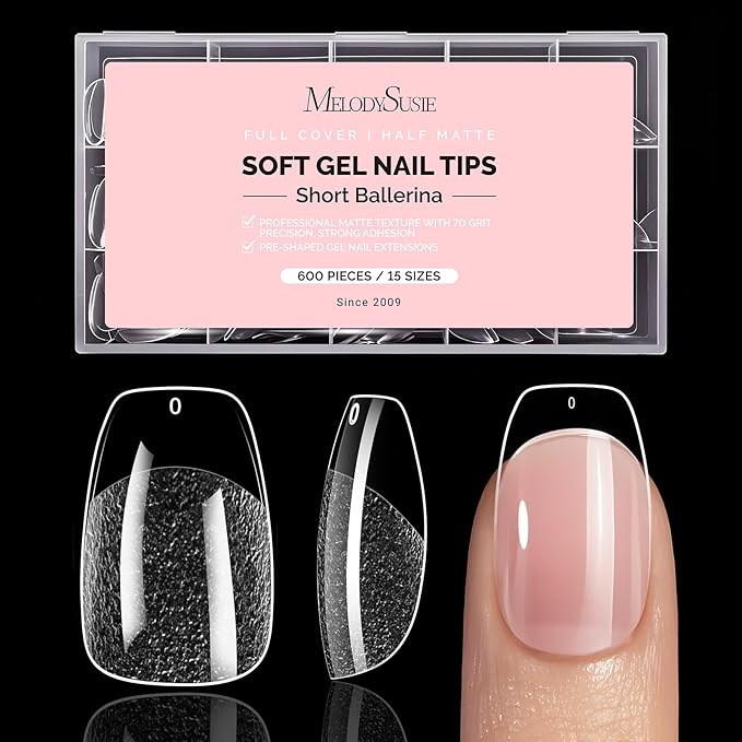 - STRONGER ADHESION WITH HALF-MATTE FINISH: These MelodySusie Short Ballerina Nail Tips feature a 70-grit half-matte surface that enhances friction and ensures stronger bonding. This design makes them easier to apply while providing a snug fit, perfect for both professional salon use and at-home DIY nail extensions
