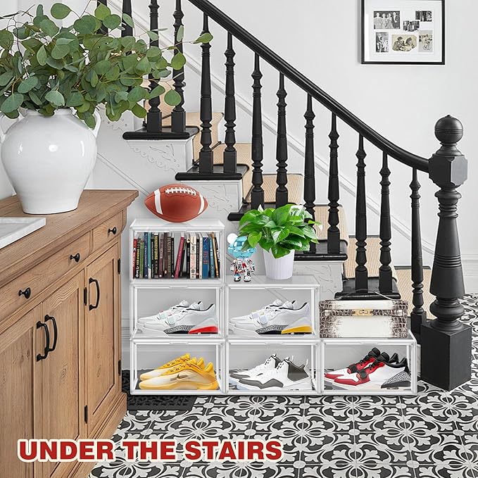 - Multifunctional Storage Organizer:Not just for shoes—use this stackable storage organizer for sneaker,boots,handbags, hats, cosmetics or collectibles. This shoe box can be placed in different Spaces to organize your closet, bedroom, hallway or porch.Perfect for home, dorms, or retail display