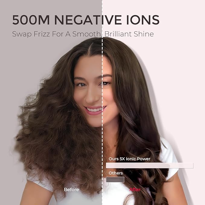 - 500 MILLION IONS - With 500 million negative ions (5X more than traditional brush blow dryer), TYMO AIRBEAM blowout brush reduces frizz while enhancing smooth and shiny for long-lasting fullness results.