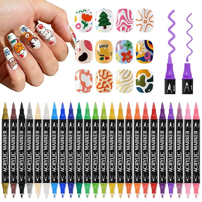 - 【Nail Art Pen for Painting Nails】With smooth paint flow and double-ended pen-type application, you can quickly create patterns. Nail art marker pens art suitable for both fingernail and toenail designs. Even beginners can complete manicures well!