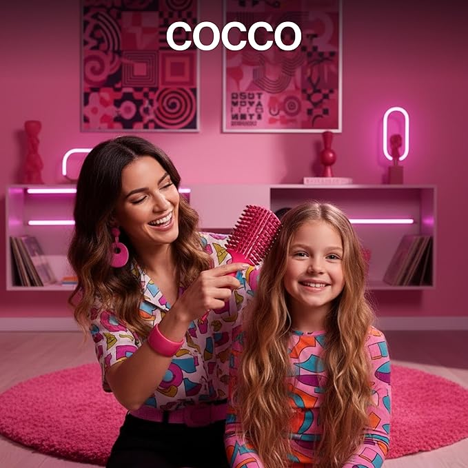 COCCO Aura Vent Boar Brush | Vented Dual-Curved Design for Faster Drying, Effortless Detangling & Shine, Boar + Nylon Bristles, Ergonomic Comfort Handle for Wet & Dry Hair Styling - Pink