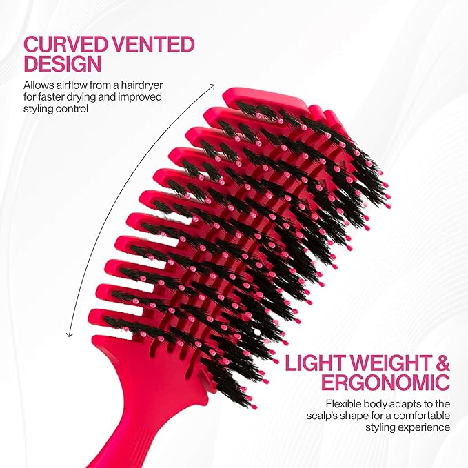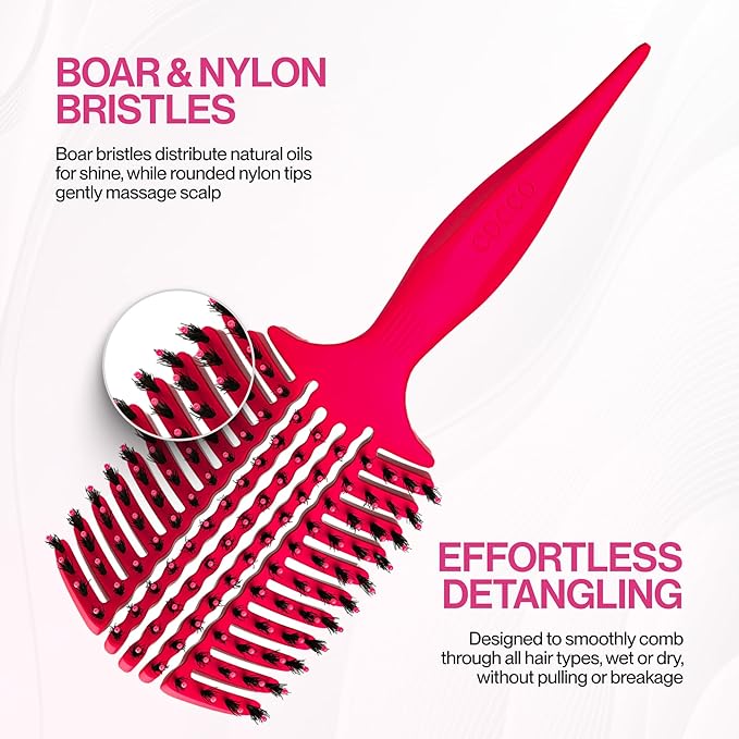 - Premium Boar + Nylon Bristle Blend | Natural Boar bristles enhance shine and smoothness, while flexible nylon bristles add lift and volume, and effortless detangling for a frizz-free, healthy look.