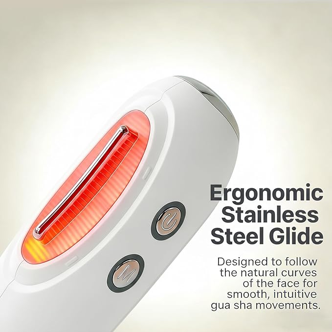 - 【Modern Gua Sha with Heat for Puffy Mornings】Glide this electric gua sha lymphatic contour face brush with gentle warmth and soft vibration along your jawline and neck for about 5–10 minutes to help reduce the look of morning puffiness and prep skin for smoother makeup.