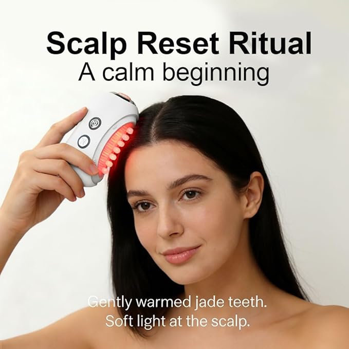 - 【3-in-1 Multi-Surface Design for Face, Neck, Eye & Scalp】This facial massager features three dedicated surfaces so one tool can care for your face, neck ,eye and scalp: jade particles are smooth and delicate, offering a gentler experience compared to ordinary scalp massagers. Consistent use helps strengthen the scalp's barrier function. The rose quartz eye massager provides precise care for the eye area, effectively reducing dark circles, under-eye fine lines, and puffiness. The stainless steel gua sha edge, with its excellent thermal conductivity, soothes and relaxes, helping you gently sculpt your facial contours during a 10-minute at-home treatment.