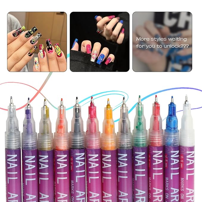 - 【Quick-Drying Colors】Each nail polish pen delivers consistent, vibrant color and dries quickly to help prevent smudging. The waterproof nail pen ensures long-lasting color, making it ideal for complex nail art and creative nail painting pen applications.