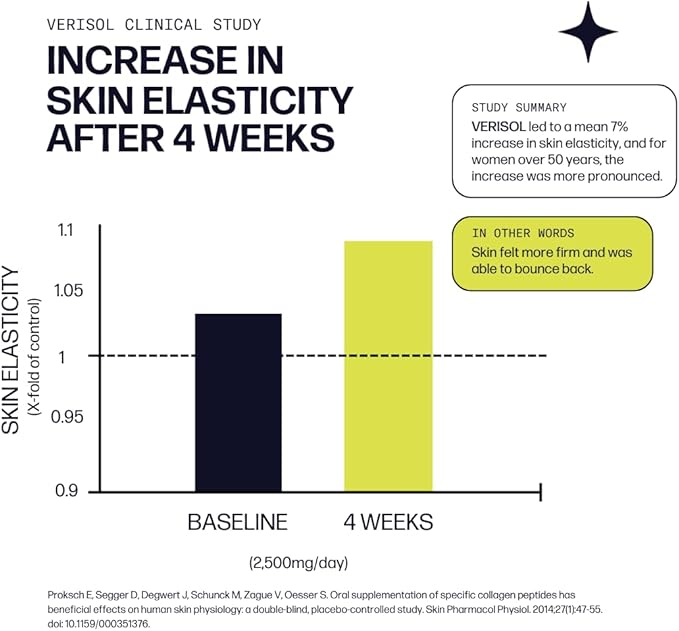 - CLINICALLY STUDIED VERISOL COLLAGEN — 2,500 mg VERISOL peptides and 66 mg vitamin C per serving to support firmer, smoother, more radiant skin